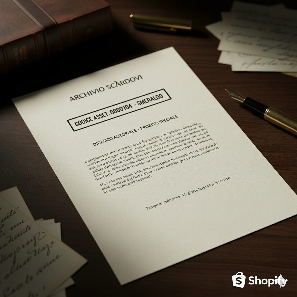 L'acquisizione del presente asset formalizza un incarico autoriale finalizzato alla redazione di un'opera dell'ingegno inedita. Il servizio si configura all'interno dell'Archivio Scàrdovi come una prestazione professionale di alto profilo, dedicata alla creazione di valore intellettuale e strategico, valida sia in ambito istituzionale che privato.